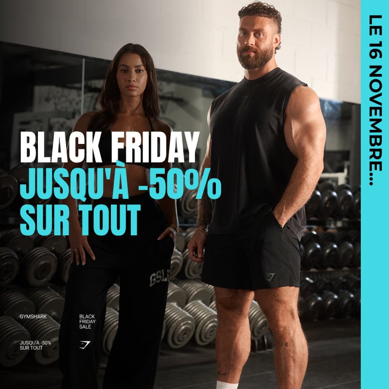 Il n’y a pas encore de date annoncée pour le Black Friday Gymshark 2026, mais restez à l’affût de nos prochaines promos en vous inscrivant à notre newsletter ou en téléchargeant l’application Gymshark.