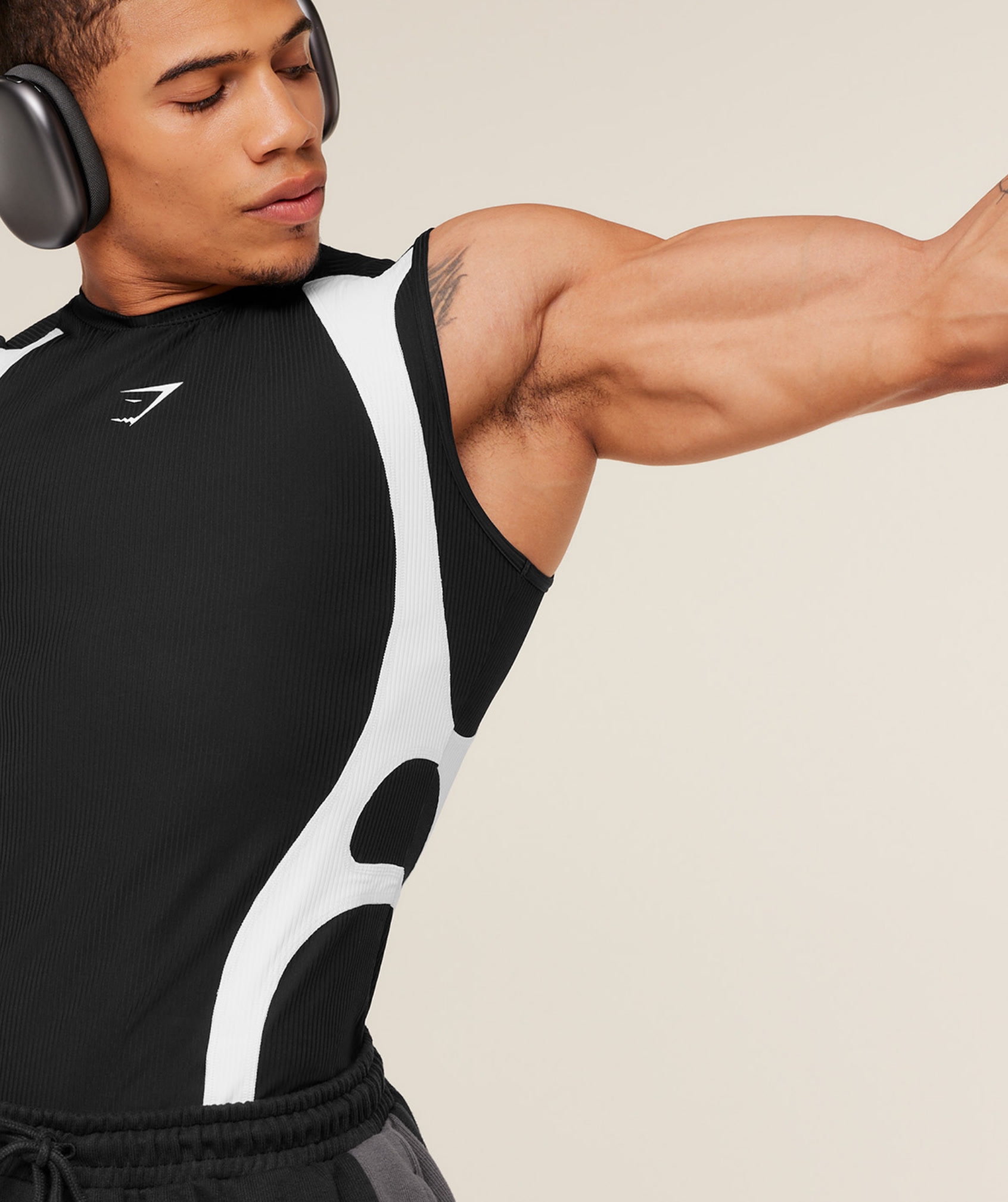Designed for those who don’t fit the mould, this piece uses an ultra-tight compression fit designed to enhance your physique, made with stretchy ribbed fabric and contrast panels. Crafted from an 88% polyester and 12% elastane blend.
